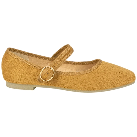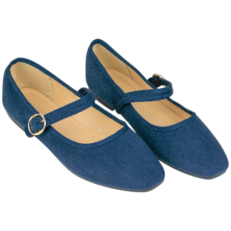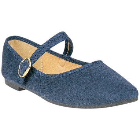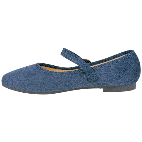 Merceditas de terciopelo planas, punta cuadrada, cierre de pulsera con hebilla dorada, forro y plantillas de material efecto piel, suelas planas de goma.