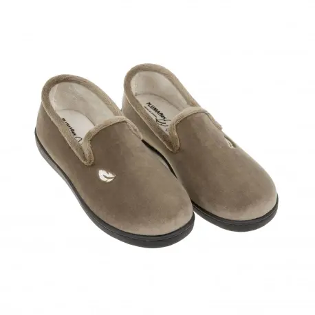 Zapatilla cerrada de estar por casa de la casa Plumaflex, con plantilla extraíble de espuma de PU que guarda la forma y aporta la mayor comodidad posible, con tratamiento eucalipto. Fabricada en tejido similar al terciopelo.