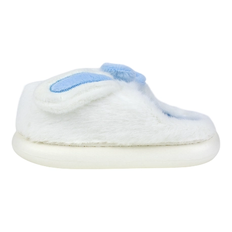 Las zapatillas de estar por casa para mujer y niña están fabricadas en felpa color blanco con forma de conejito.