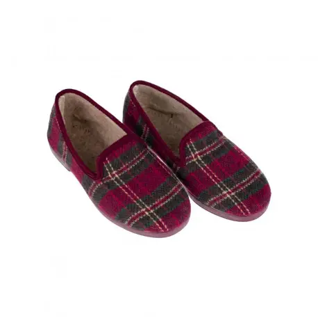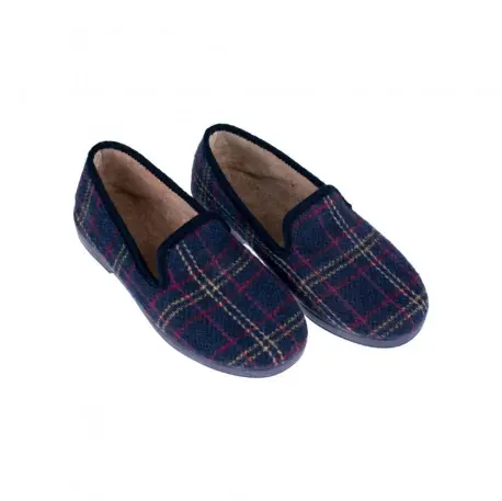 Zapatilla cerrada de estar por casa, fabricada en tela estampada a cuadros.