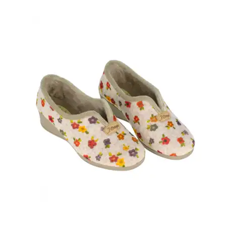 Experimenta la elegancia y la comodidad con nuestras zapatillas de casa J. Ortega Modelo 1842. Estas zapatillas cerradas cuentan con una cuña de 4 cm para un toque de estilo y altura. Fabricadas en España con fieltro de alta calidad y un forro cálido, mantendrán tus pies acogedores en cualquier temporada. Su plantilla anatómica asegura un ajuste perfecto. El diseño en color beige con estampado de flores agrega un toque de sofisticación a tu estilo de casa.