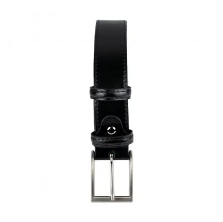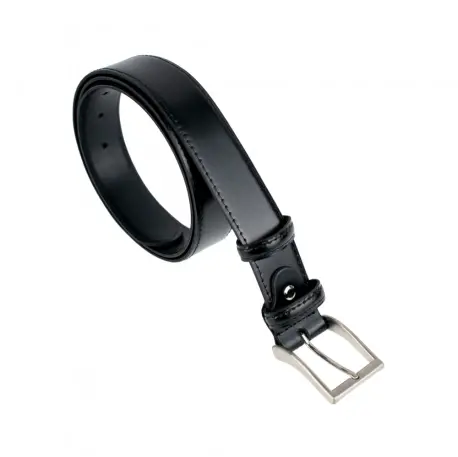 Elegante cinturón fabricado en piel con brillo y costuras a juego. Tiene un ancho de 3,5 cm, ideal para completar los atuendos tanto casuales como formales. Su fabricación en España asegura muy buena calidad y atención al detalle.