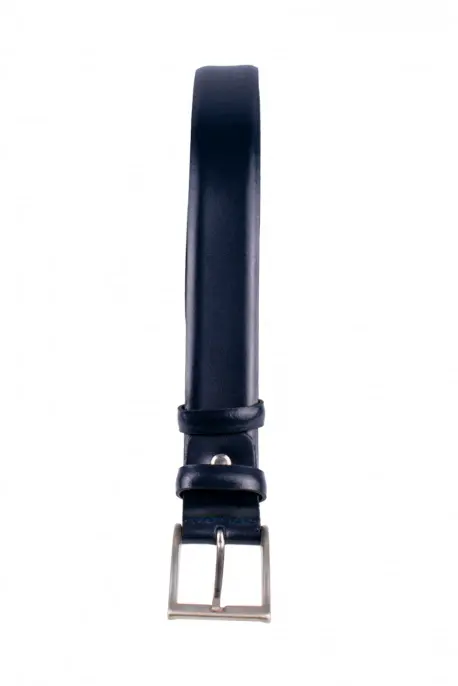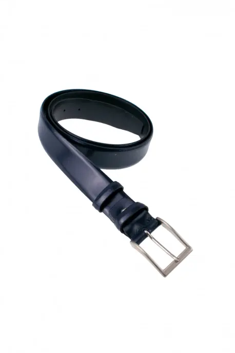 Cinturón fabricado 100% en piel color azul marino liso. Estilo versátil sin costuras visibles. Hebilla de metal. Talla 115.