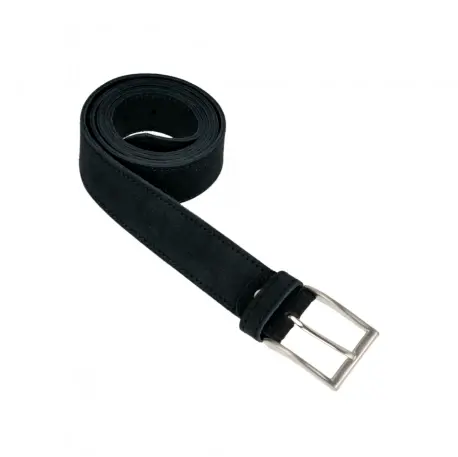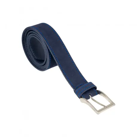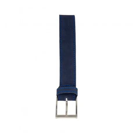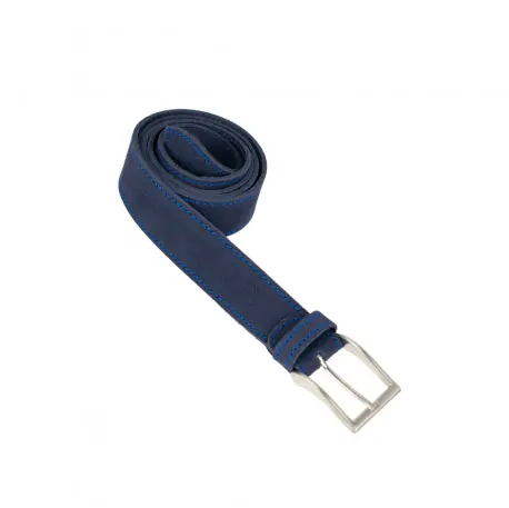 Cinturón básico fabricado en seraje de alta calidad hecho en España. Diseñó en color azul, negro y cuero con costuras laterales visibles y hebilla metálica. Este cinturón es muy versátil, acomodándose perfectamente a los estilos más casuales como elegantes.