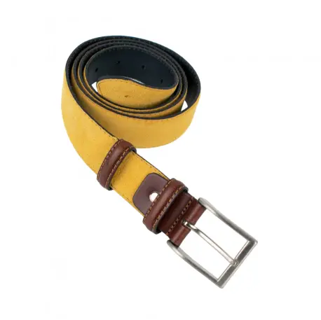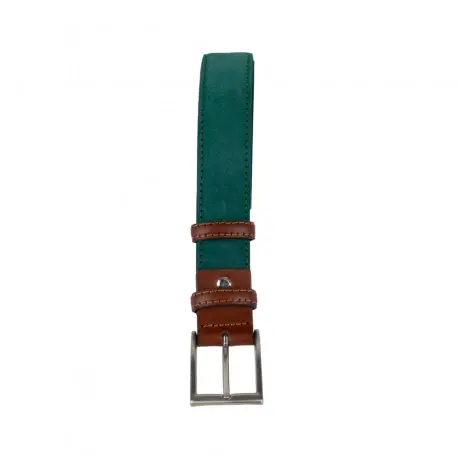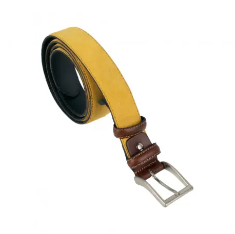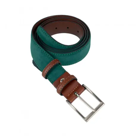 Cinturón de piel seraje en color liso con detalle en marrón y hebilla de metal. Estilo versátil. Hechos en España por manos expertas.