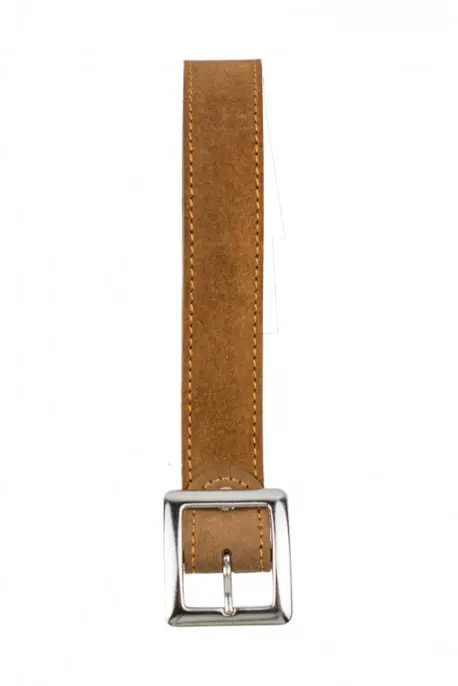 Experimenta la calidad artesanal española con nuestro cinturón de serraje modelo 745. Fabricado en España, este cinturón presenta una hebilla metálica cuadrada que aporta un toque distintivo.