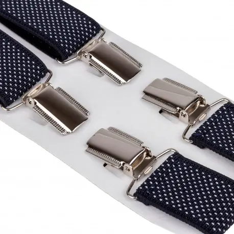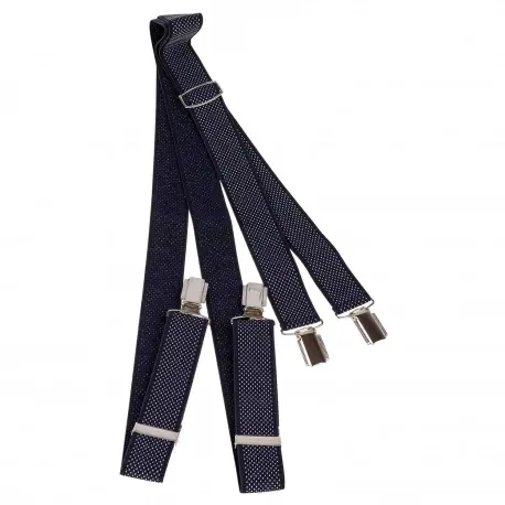 Tirantes de vestir, color azul marino estampado puntille blanco. Detalles metálicos con correa regulable. Estilo elegante.