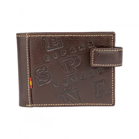 Si buscas una cartera de piel de calidad y con un toque distintivo, esta es la tuya. Esta cartera está fabricada en España con piel marrón y tiene el grabado España en relieve en la parte frontal. Además, cuenta con un pequeño detalle de la bandera de España en el lateral. Tiene un cierre de broche que te permite abrir y cerrar la cartera con facilidad y seguridad. En el interior, encontrarás un monedero con corchete para guardar las monedas, un espacio para el DNI y las fotos, tres espacios para las tarjetas de crédito y una billetera para los billetes. Es una cartera práctica, elegante y original que te acompañará en tu día a día.