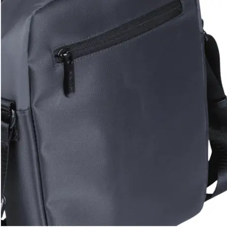 Bolso estilo reportero fabricado en nylon de alta calidad, cuenta con varios compartimentos que cierran con cremallera y asa de fácil regulación.