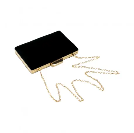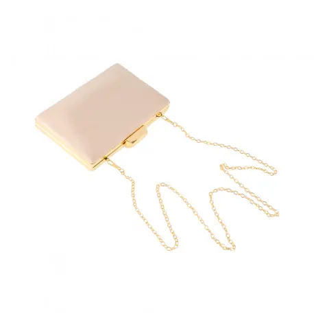 Con una forma geométrica única y un elegante armazón dorado, este bolso captura miradas en cualquier evento especial.