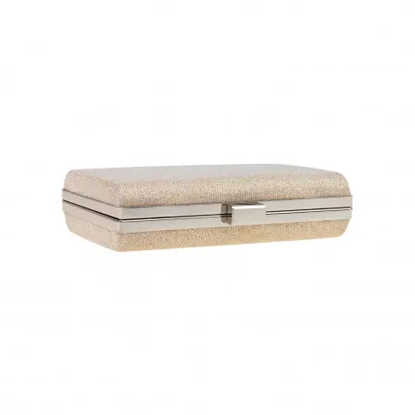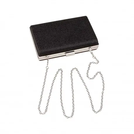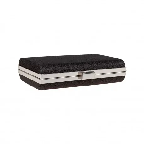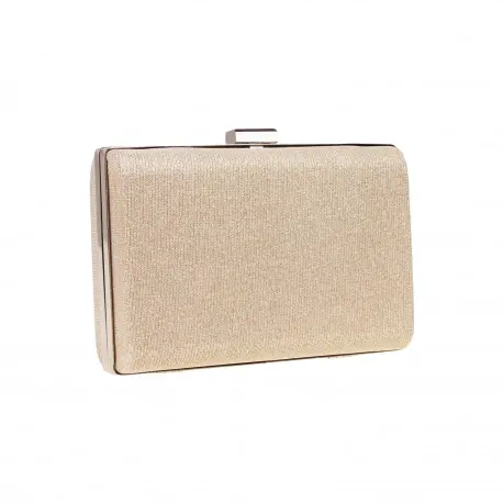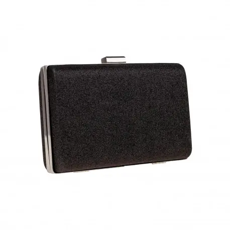 Precioso bolso de fiesta estilo caja con cerrojo metálico. Disponible en negro y dorado brillantes.