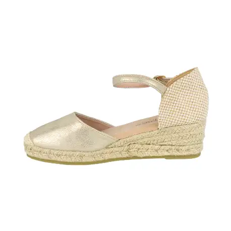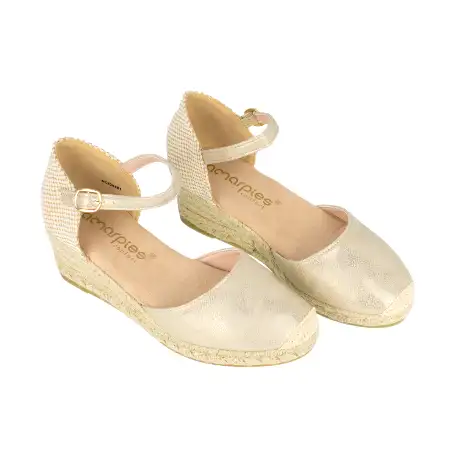 Su cuña de 5 cm es la altura inteligente: te proporciona esa elevación que estiliza la figura y realza cualquier look, pero manteniendo una base estable y una comodidad que dura todo el día. Confeccionadas en tela fresca y ligera, y con una elegante pulsera con hebilla que sujeta el tobillo, te sentirás segura y sofisticada. Disponibles en una paleta de colores infalible que incluye los metalizados de tendencia: Dorado, Beige, Plata, Negro y Camel.