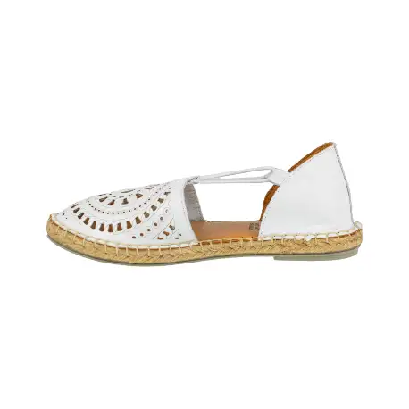 Descubre la elegancia de las Alpargatas Planas de mujer en Piel Troquelada en Blanco o Camel o Dorado Punta Talon, estas alpargatas combinan comodidad y estilo.