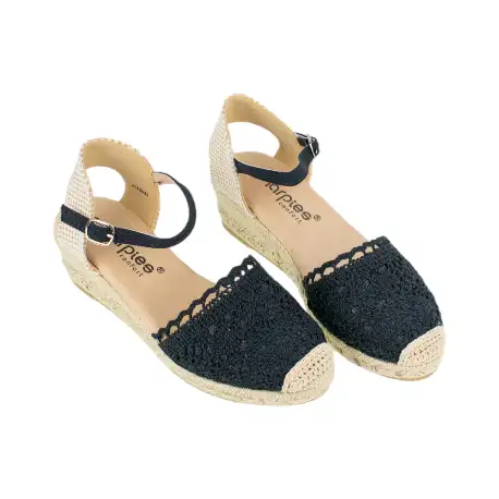¡Añade un toque de estilo bohemio a tu look con las cuñas de esparto Amarpies! Con tres cuerdas y una altura de 5cm, estas cuñas destacan por su exquisito diseño en tela croché en tono beis.