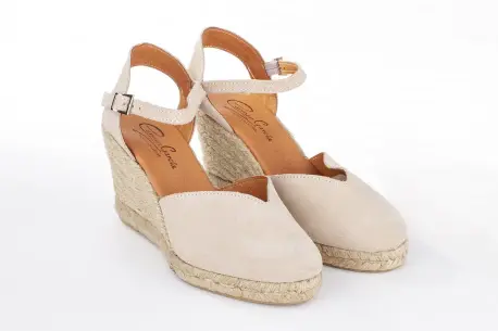 Zapatillas con cuña de esparto de siete cuerdas, fabricadas enteramente en piel natural de muy buena calidad. Con una altura de 9 centímetros estas cuña de esparto resultan muy cómoda gracias a la plataforma y su composición en esparto natural. Corte en V para mejorar el ancho y dar un toque más elegante. Cierre con pulsera al tobillo para un ajuste personalizado.