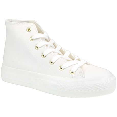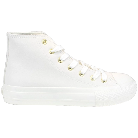 Zapatillas deportivas monocolor en tendencia. Fabricadas con materiales de buena calidad en color blanco, cuenta con plataforma de 3cm., cierre de cordones con ojales dorados y puntera de goma.