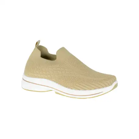 Las zapatillas deportivas sin cordones Mysoft, modelo 23M255, son un calzado cómodo y versátil. Están fabricadas con una tela elástica de alta calidad en color beige.