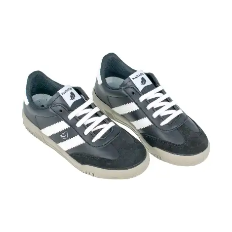 El clásico negro se complementa con rayas blancas y una puntera negra, creando un contraste sofisticado que nunca pasa de moda. La plantilla extraíble proporciona una comodidad incomparable, mientras que el cierre de cordones asegura un ajuste perfecto.