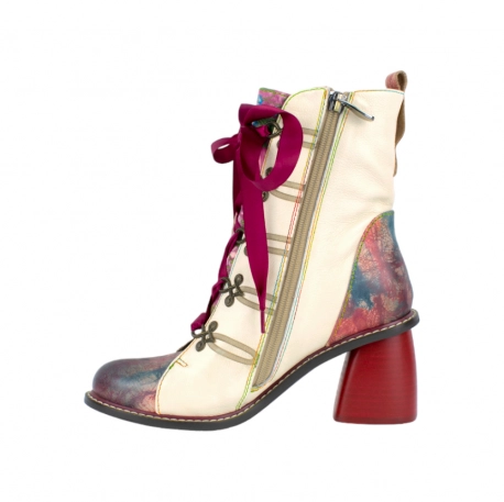 Con un estampado único y un tacón de 7 cm, este botín te hará destacar en cualquier ocasión. Su cierre de cremallera y juego extra de cordones finos garantizan un ajuste perfecto.