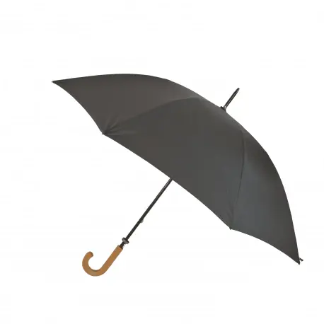 Un paraguas clásico para hombres con una robusta carpa de poliéster, mango de madera, apertura manual, 8 varillas de fibra de vidrio, estilo de bastón y un diámetro abierto de 123 cm.