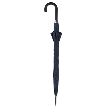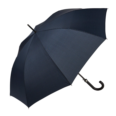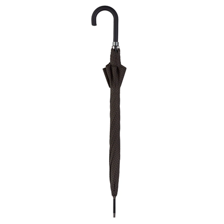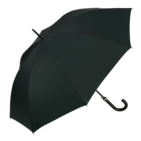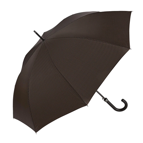 Paraguas largo con estampado de cuadro escocés en varios colores y mango plástico.