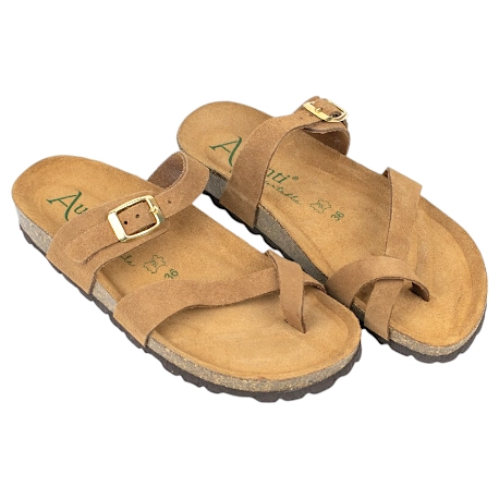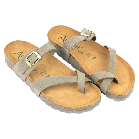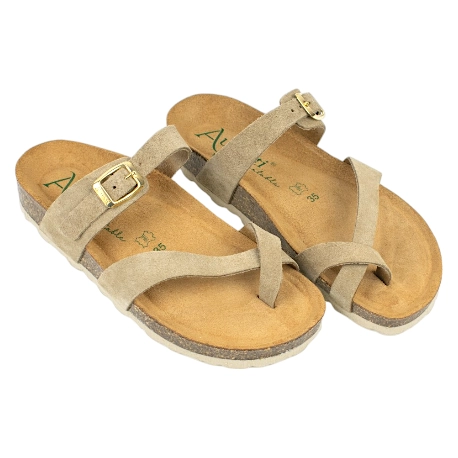 Sandalias Bio Mujer de Dedo con Tiras Cruzadas en Piel Serraje