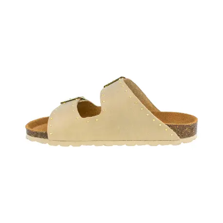 Si buscas unas sandalias de doble hebilla para mujer que combinen carácter y un confort excepcional, de Autenti es para ti. Confeccionadas en España con suave piel engrasada natural y disponibles en elegantes tonos beige, blanco, negro o marrón, estas sandalias bio se distinguen por el detalle especial de sus tachuelas doradas, un toque de luz que realza su diseño y habla de tu estilo.