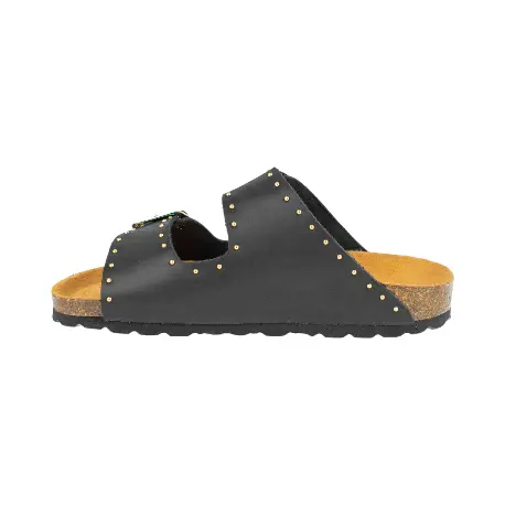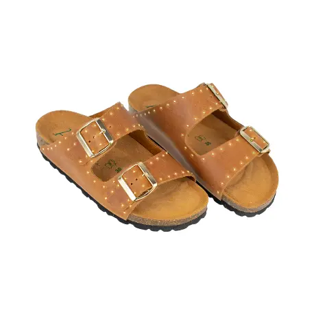 - ✅ Detalle Único de Tachuelas Doradas: Un toque de distinción y tendencia que eleva el diseño clásico de la sandalia de doble hebilla.
