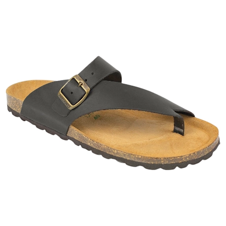 Sandalias bio de entre-dedo, fabricadas en piel natural color marrón. Plantilla de piel con acolchado Soft anatómico, muy cómoda para nuestros pies.
