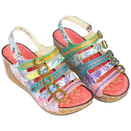 Sandalia de Cuña en Piel Laura Vita Dino – Color, Arte y Confort en Cada Paso