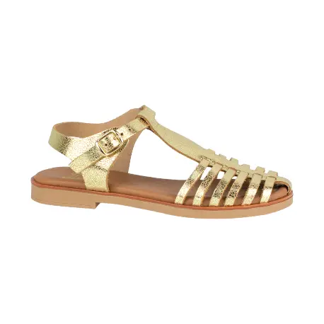 Sumérgete en el estilo relajado y a la moda con las sandalias tipo cangrejera plana Studio Scarpe, modelo SN34329. Confeccionadas en piel en colores plomo y oro, estas sandalias añaden un toque de elegancia a tu look casual.
