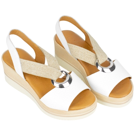 Las sadailias con cuñas perfectas si buscas comodidad y estilo en una misma sandalia. Fabricadas enteramente en piel de alta calidad, su diseño elegante reluce con la pieza metálica central que sujeta sus cómodos elásticos, para que te olvides de atar y desatar.