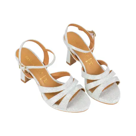 Descubre las nuevas sandalias de tacón de 9 cm, en color blanco, diseñadas por Daniela Vega. El modelo 2431 presenta un elegante diseño de tiras que envuelven el pie con gracia.