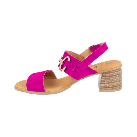 Disponible en colores beis y bogambilla. Cuenta con un cómodo tacón ancho de 5.5cm y una suela de goma antideslizante para mayor seguridad.