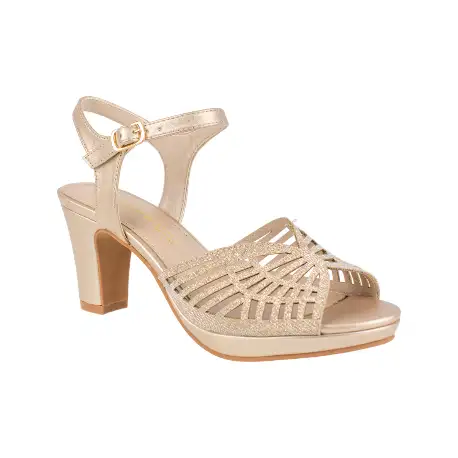 ¡Añade un toque de glamour a tu armario con nuestra sandalia de tacón! Con una elegante altura de 8cm en colores dorado y negro, esta sandalia presenta un corte de mariposa que añade un encanto único a tu estilo.