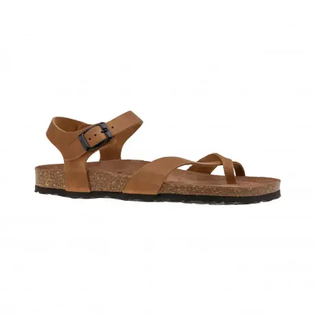 Sandalia bio fabricada enteramente en piel. Cierre de pulsera con hebilla ajustable y tiras finas hacía el dedo. Plantilla anatómica muy cómoda.