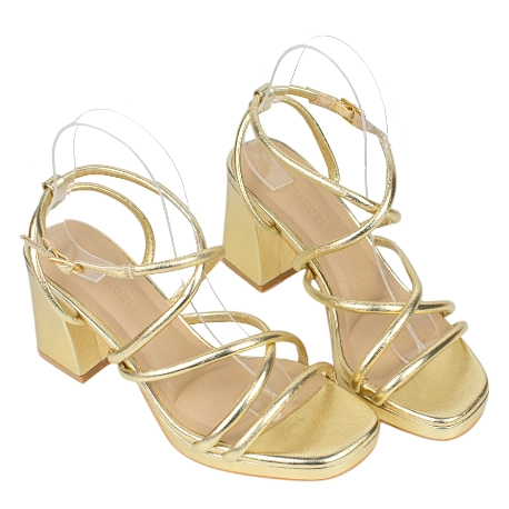 Su diseño es pura sofisticación. Un entramado de tiras finas y redondas abraza el pie con delicadeza, creando un efecto visual ligero y muy femenino. El imponente tacón de bloque de 8,5 cm, combinado con una plataforma delantera, es el truco de las expertas en moda: te da la altura de un taconazo pero con una estabilidad y comodidad incomparables. Además, su plantilla con zonas acolchadas y la pulsera ajustable al tobillo aseguran que puedas caminar, posar y bailar sin preocupaciones. Son las sandalias de tacón ancho para fiesta que siempre habías soñado.
