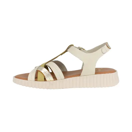 Descubre la elegancia y comodidad con las sandalias de piel Studio Scarpe, modelo SN132656. Este diseño semi plano, con una altura de 1.5 a 3 cm, presenta un estilo distintivo de cuello T y tiras entrelazadas en colores camel y hielo.