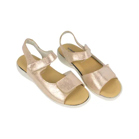 Descubre la elegancia y comodidad con nuestras sandalias Plumaflex modelo 14720. Fabricadas en España con piel de alta calidad, estas sandalias cuentan con un diseño moderno en colores plata y dorado.