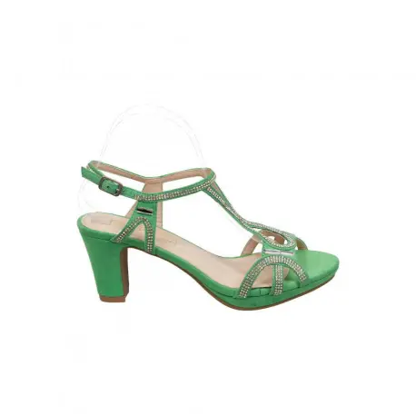 Estas sandalias de vestir mujer están diseñadas para no pasar desapercibidas. Su vibrante color verde se ilumina con una delicada pedrería brillante en la tira delantera, creando un efecto "joya" sofisticado y muy elegante. El diseño se estiliza con un elegante cuello en T y se asegura con una fina pulsera con hebilla. Y porque la belleza no debe sacrificar la comodidad, hemos diseñado un tacón ancho de 8,5 cm que se equilibra a la perfección con una plataforma delantera de 2 cm, reduciendo la inclinación y aumentando la estabilidad. Podrás disfrutar de la fiesta de principio a fin gracias también a su plantilla de piel acolchada en el talón.