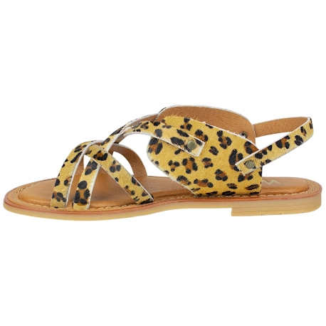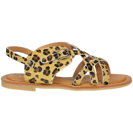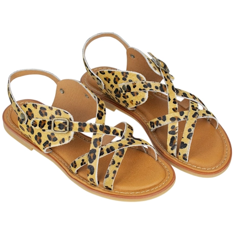 Sandalia Plana de Piel con Tiras Estampado Leopardo