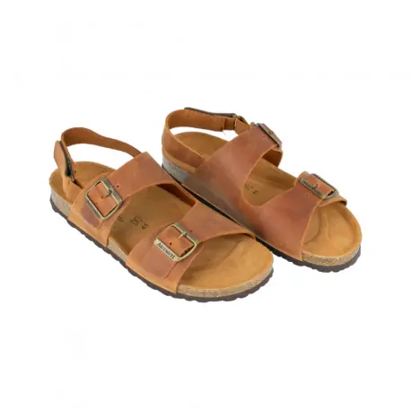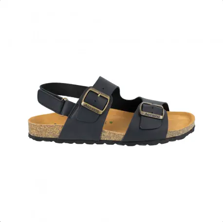 Sandalia bio con planta en corcho natural antibacteriano. Cuenta con plantilla anatómica de acolchado confort Soft carbónico, muy cómoda y transpirable. Suela de material ligero.