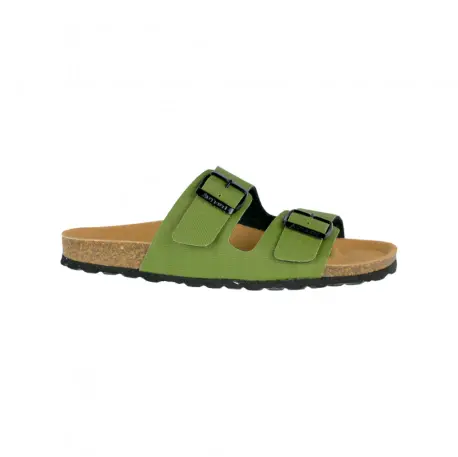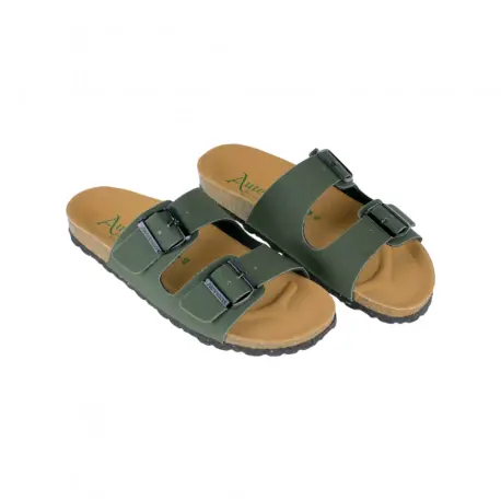 Cuentan con una plantilla anatómica de tela y planta de corcho, un material natural y renovable que ofrece una pisada suave y cómoda. El cierre de doble hebilla en el empeine permite un ajuste seguro y preciso.