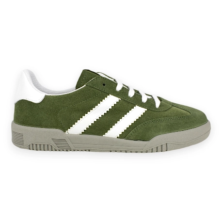 Elaboradas en España con piel serraje de alta calidad, estas zapatillas ofrecen suavidad, resistencia y un acabado de primera. Los cordones aseguran un ajuste cómodo y firme, mientras que la suela plana de goma proporciona una pisada estable y ligera, ideal para el uso diario.