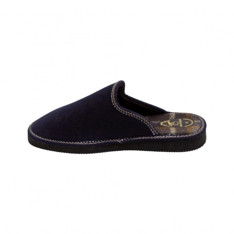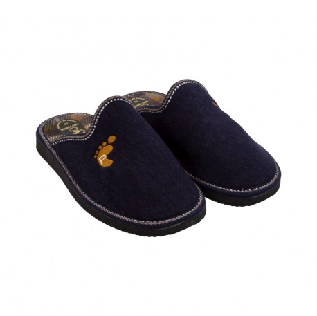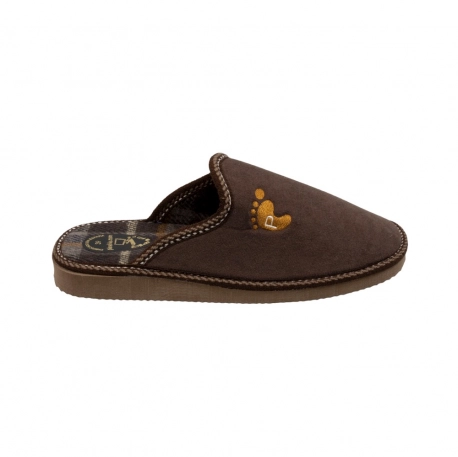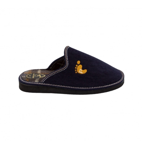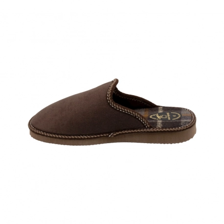 Zapatilla para estar por casa fabricada en tela cálida para el Invierno, diseño clásico abierto en el talón de horma estándar.