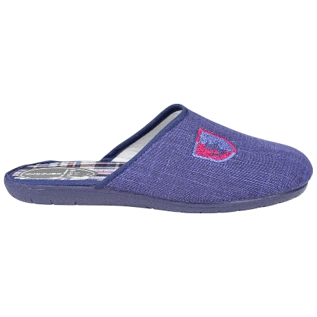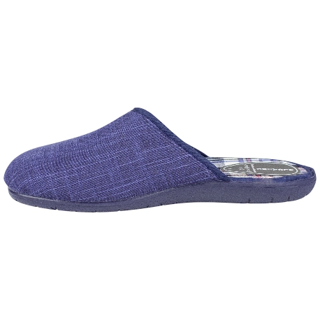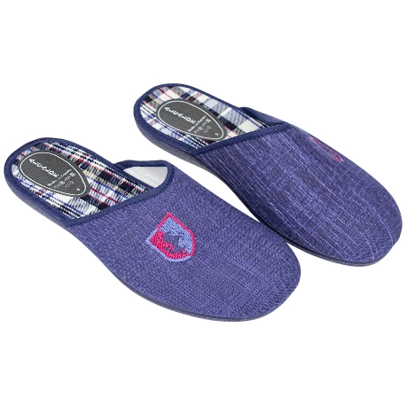 Zapatillas de estar por casa para chicos, hechas con telas frescas, en color azul marino. Son cómodas y la suela plana de goma le da buen agarre.