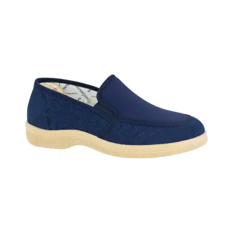 Zapatilla de verano estilo mocasín fabricado en tela fresca, destaca su empeine de licra adaptable haciéndolo muy cómodo especialmente para los pies más sensibles. C