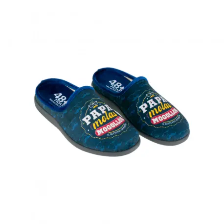 Zapatillas descalzas para casa, marca 48 Horas, modelo 329204, con plantilla extraíble acolchada para mayor comodidad. Estas zapatillas cuentan con un estampado único que lleva la frase 'Papá molas mogollón, te queremos un montón'. Fabricadas en España, tienen una suela ligera que las hace perfectas para el uso diario en casa.