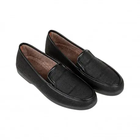 Zapatilla de calle para caballero estilo mocasín. Fabricado en materiales sintéticos con interior textil cálido para la temporada Otoño-Invierno. Gomas elásticas en los laterales. Suela de goma. Hechos en España.