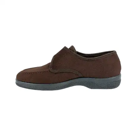 Zapatilla cerrada de casa o calle cómoda de ancho especial y cierre con velcro. Fabricada en ante con forro cálido para la temporada Otoño-Invierno. Suela antideslizante.